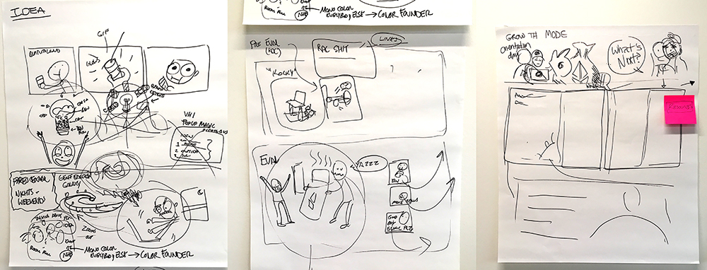 After the workshop we wanted to deliver something to the web3 founders in our ecosystem to let them know we had heard them. That their input and their journey was being thought about and improved upon. We also wanted them to be inspired to be working within our org along with being the pioneers of blockchain and web3! Since we're advocates of dogfooding our own processes, we went from sketch...